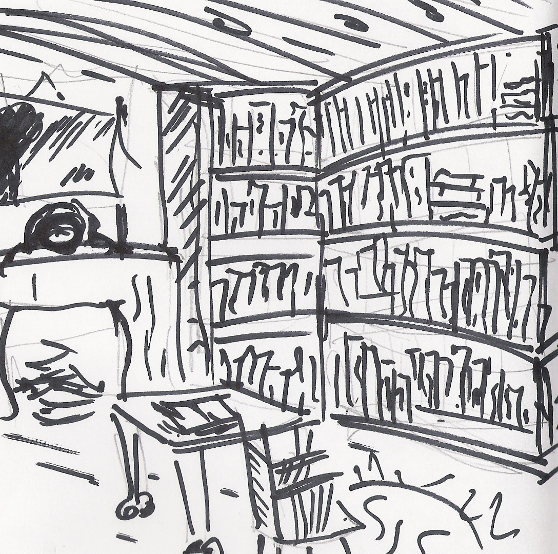 Between antiquarian bookshops, in owlish light,”