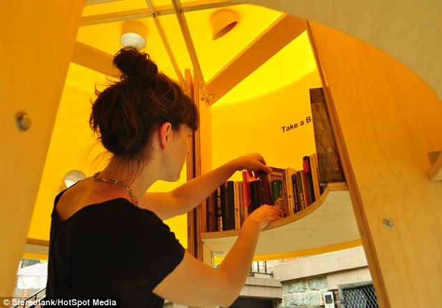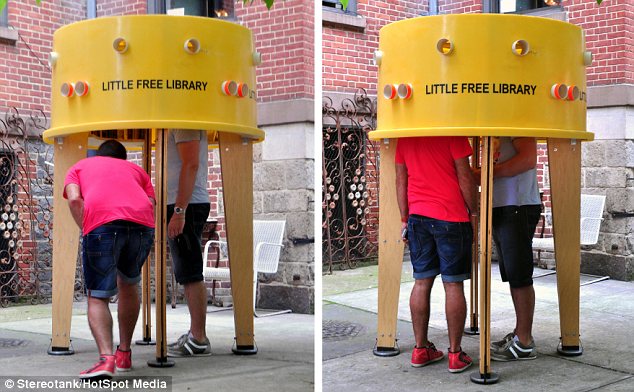 2. In New York a bright yellow plastic water tank housing 40 books allows city-dwellers to take a break from the pace of life in the metropolis by chilling out with a good story.